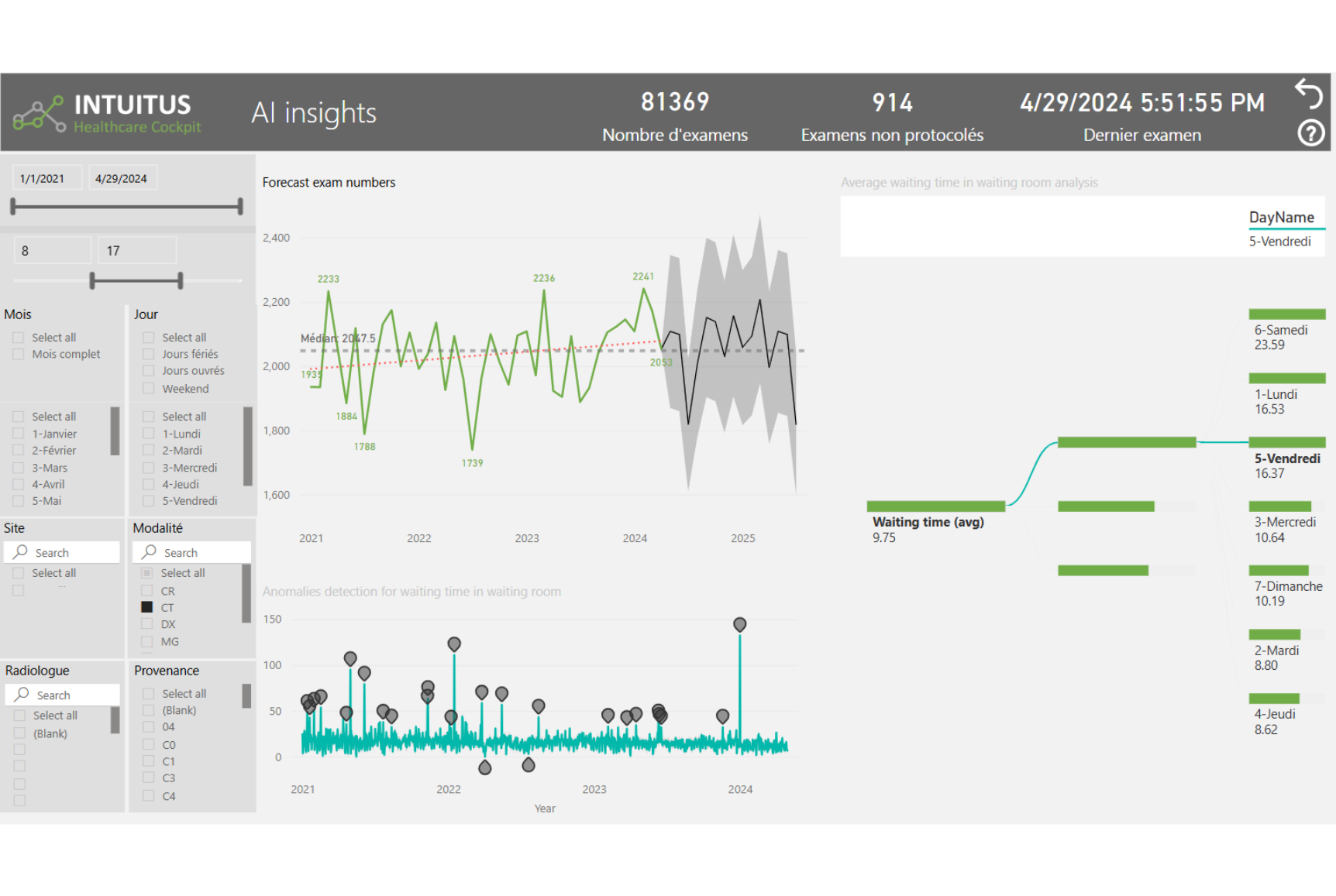 In practice, INTUITUS can now predict laboratory or radiology department activity months in advance. It also sheds light on observed phenomena, such as extended waiting times in reception areas, by identifying contributing factors such as equipment type, human resource availability, or fluctuations by time of day and week.